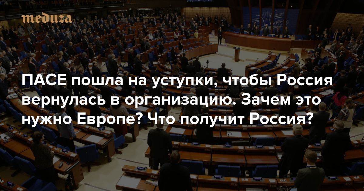 Парламентская ассамблея Совета Европы (ПАСЕ) приняла поправки, позволяющие вернуть российской делегации все права (и самое главное — право голоса), которые были отняты у нее в 2014 и 2015 годах. Но немедленного возвращения российских парламентариев в ПАСЕ не произошло, потому что депутатам из других стран удалось заблокировать его еще как минимум на сутки. В случае, если Россия вернется в организацию, ее может временно покинуть делегация Украины. Некоторые европейские политики уже назвали решение в пользу России позором. «Медуза» рассказывает, почему вопрос о полномочиях России в организации, которая не имеет существенных рычагов влияния, вызвал такой острый конфликт.