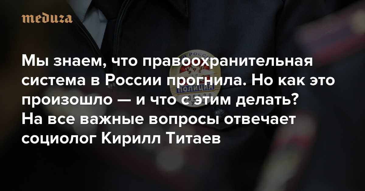 Мы знаем, что правоохранительная система в России прогнила. Но как это произошло — и что с этим делать? На все важные вопросы отвечает социолог Кирилл Титаев