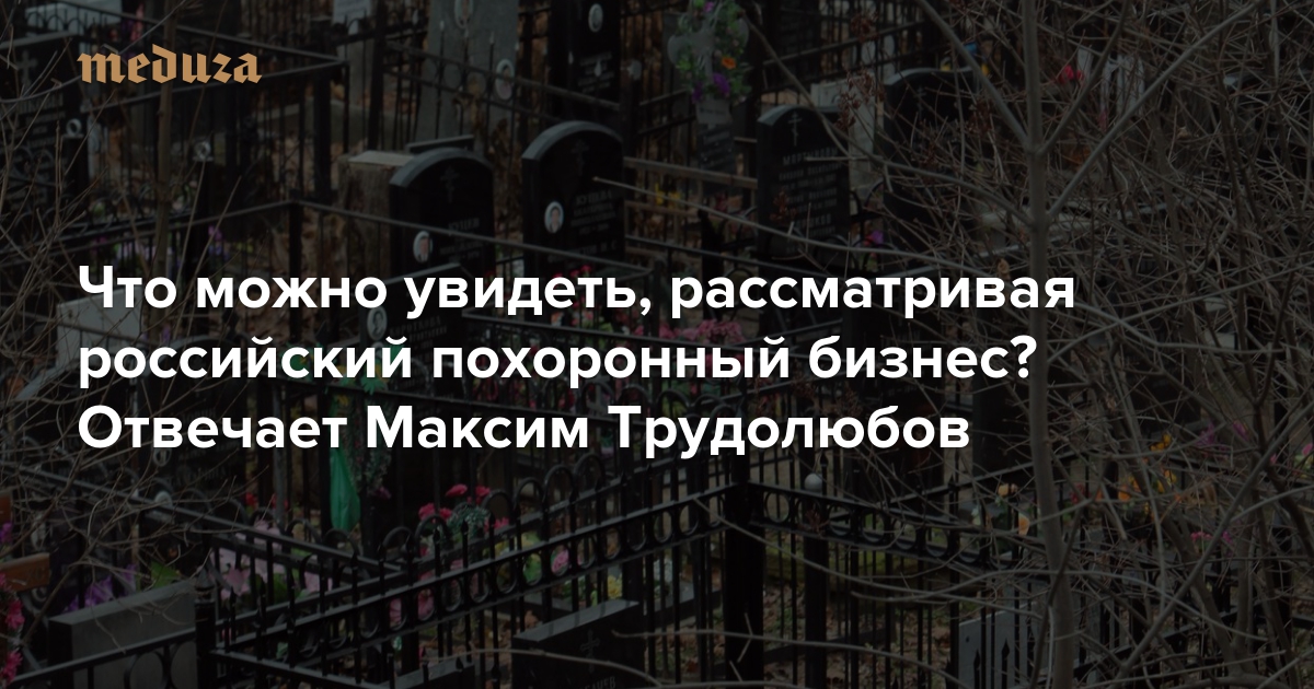 «Медуза» 1 июля опубликовала новое расследование Ивана Голунова, посвященное московскому рынку ритуальных услуг. Первая часть этого текста — там речь шла про тот же рынок, но в масштабе всей страны — вышла в августе 2018 года. Похоронный бизнес в России за последние 30 лет преобразился кардинально, но изменения эти носили один и тот же характер: на место людей, близких к криминалу, приходили люди, близкие к государству. «Медуза» попросила обозревателя «Ведомостей» и The New York Times, редактора InLiberty Максима Трудолюбова объяснить, в чем проблема с этим огромным рынком — и с теми, кто им владеет.