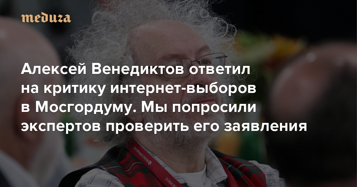 Что не так: Венедиктов либо не понимает сути вопроса, либо намеренно уходит от ответа. Специалистов смущает, что голосование организовано не силами избирательных комиссий, не на их территории, не на принадлежащем им оборудовании, не на их программном обеспечении, а на официальном сайте мэра Москвы Сергея Собянина — члена бюро высшего совета партии «Единая Россия». Эта партия сейчас имеет большинство в Мосгордуме, но, как выяснила «Медуза», на предстоящих выборах поддержанные «Единой Россией» кандидаты будут скрывать партийную принадлежность. Избирательные комиссии при этом всего лишь легитимизируют такие выборы, ставя подпись под протоколом об итогах голосования. Члены избирательной комиссии не могут никаким образом проконтролировать происходящее внутри электронной системы мэрии Москвы.