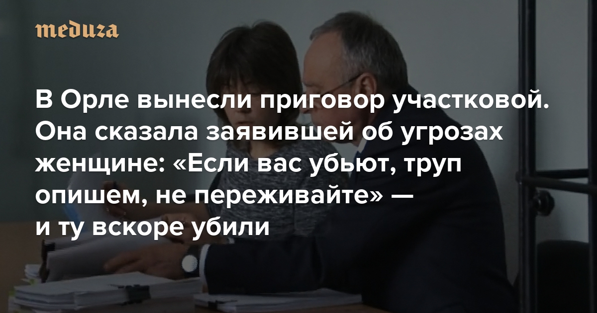 В Орле вынесли приговор участковой. Она сказала заявившей об угрозах женщине: «Если вас убьют, труп опишем, не переживайте» — и ту вскоре убили