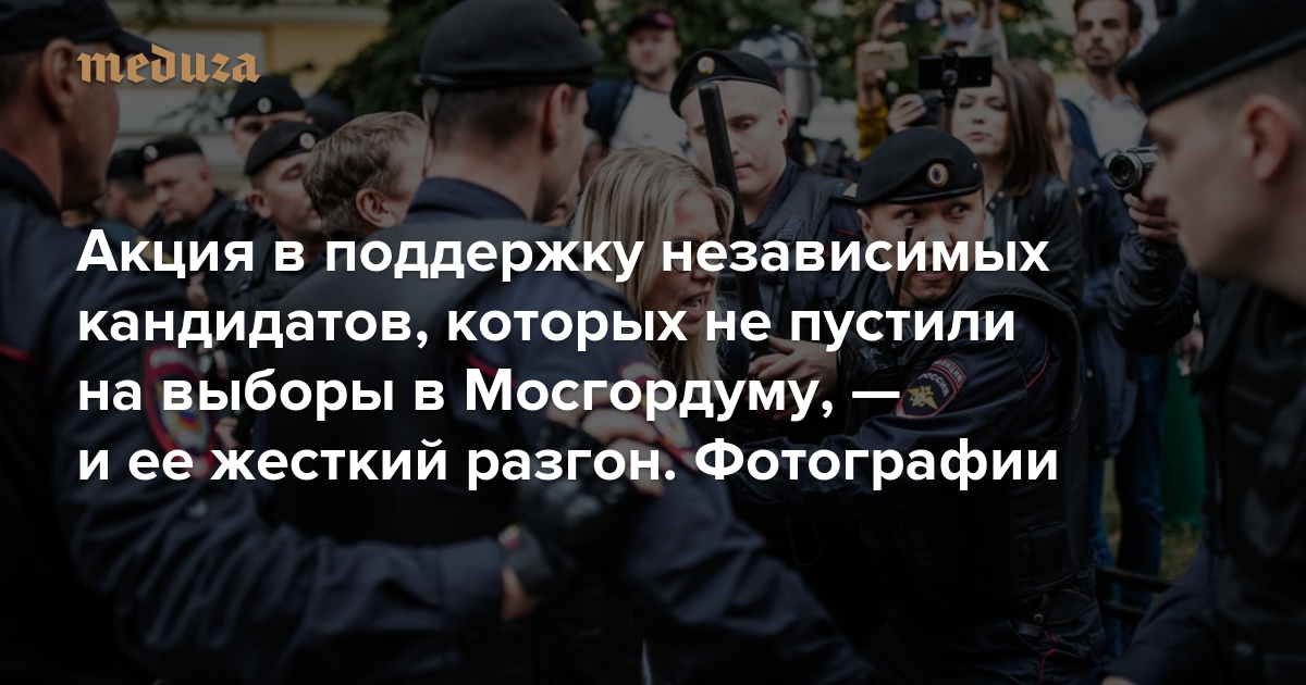 В столице 14 июля прошла акция в поддержку независимых кандидатов на выборах в Мосгордуму. Она началась в Новопушкинском сквере как «встреча муниципальных депутатов с избирателями». Затем люди дошли до мэрии и горизбиркома — где потребовали встречи с его главой, который, по словам помощника, в это время был на даче. Вечером протестующие попытались поставить палатки во дворе избиркома — акцию тут же жестко и стремительно разогнала полиция. Задержаны около 40 человек, в том числе кандидаты в депутаты Илья Яшин, Любовь Соболь, Юлия Галямина и Иван Жданов.