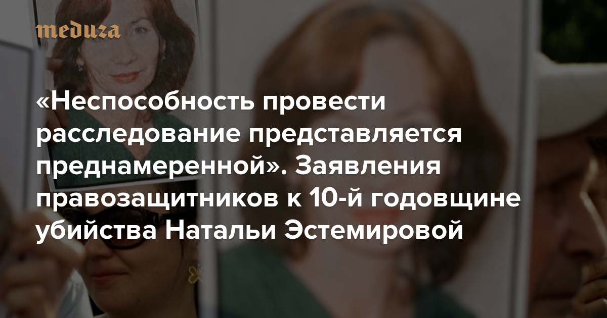 «Неспособность провести эффективное расследование представляется преднамеренной» Заявления правозащитников к 10-й годовщине убийства Натальи Эстемировой