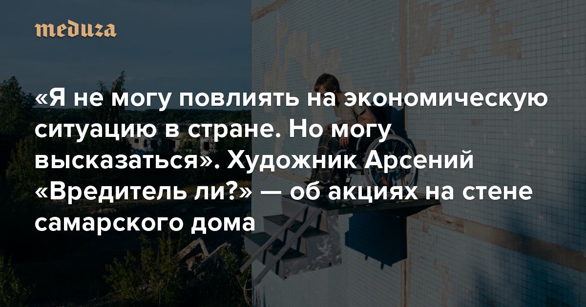 «Я не могу повлиять на экономическую ситуацию в стране, не могу раздать всем по квартире. Но могу высказаться» Художник Арсений «Вредитель ли?» — о своих акциях на стене самарского дома