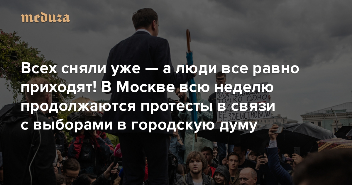 Всех сняли уже — а люди все равно приходят! В Москве всю неделю продолжаются протесты в связи с выборами в городскую думу. Репортаж «Медузы»
