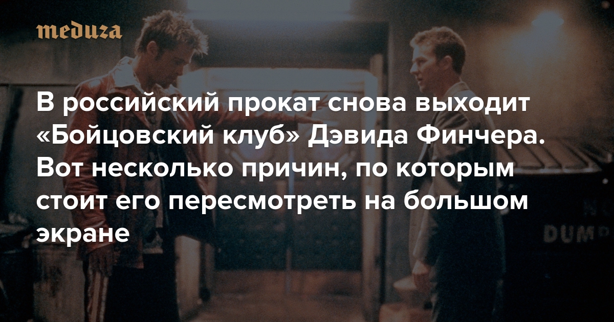 В российский прокат снова выходит «Бойцовский клуб» Дэвида Финчера Вот несколько причин, по которым стоит его пересмотреть на большом экране