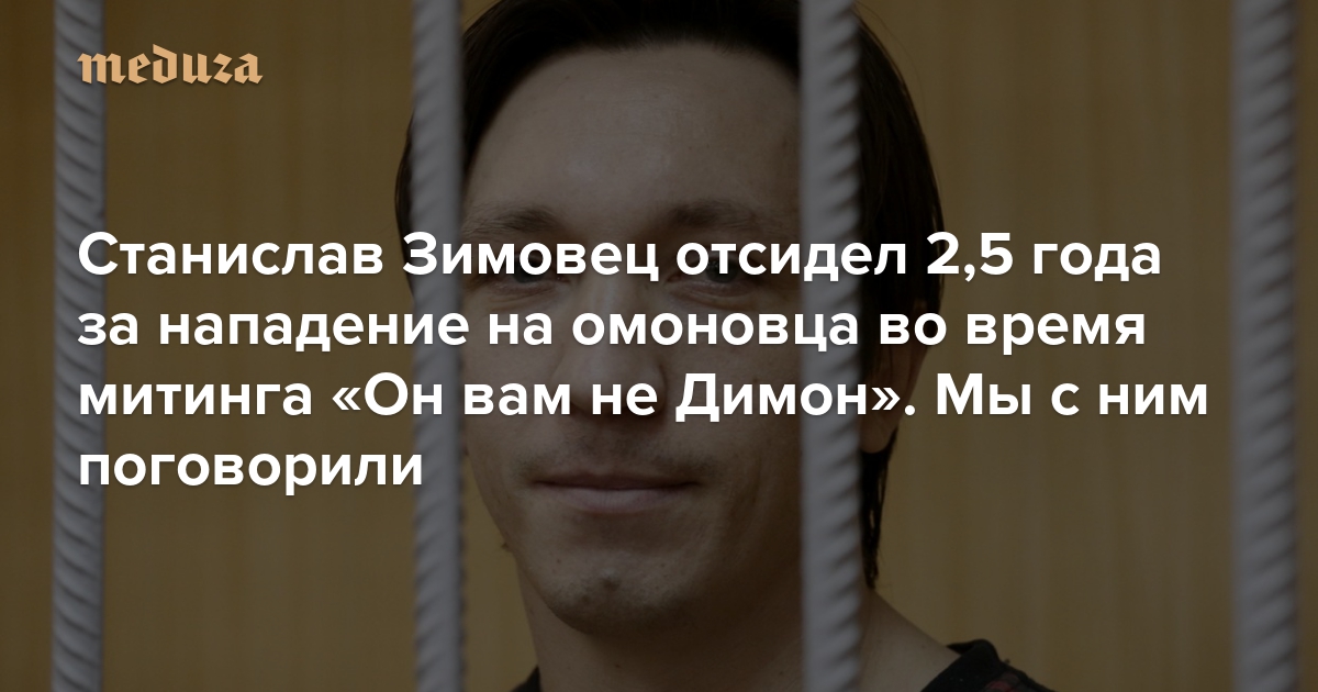 «Пытки присутствуют. Кто-то вешается, кого-то вешают» Станислав Зимовец отсидел 2,5 года за нападение на омоновца во время митинга «Он вам не Димон». Мы с ним поговорили