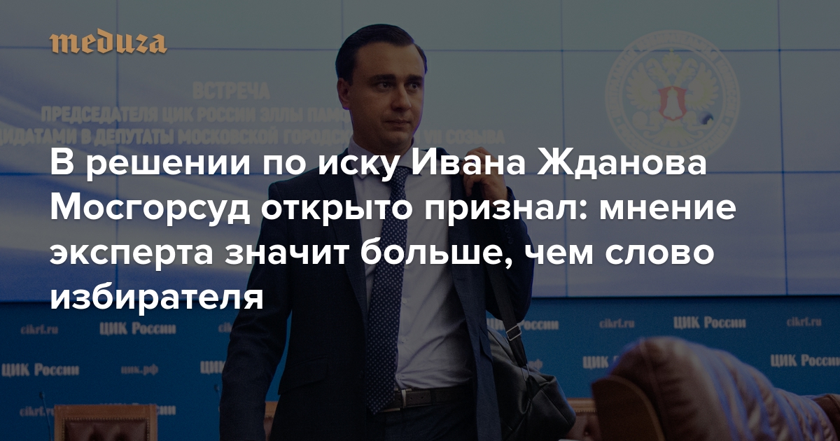 Мосгорсуд 2 августа признал законным решение окружной избирательной комиссии № 8, которая не допустила до выборов в Мосгордуму директора Фонда борьбы с коррупцией Ивана Жданова. Судья Наталия Севастьянова отказалась рассматривать заявления избирателей, которые были готовы лично подтвердить, что подписывались за кандидата. В решении, опубликованном 5 августа, она указала: если эксперт-почерковед нашел нарушение, избирателя слушать не надо.