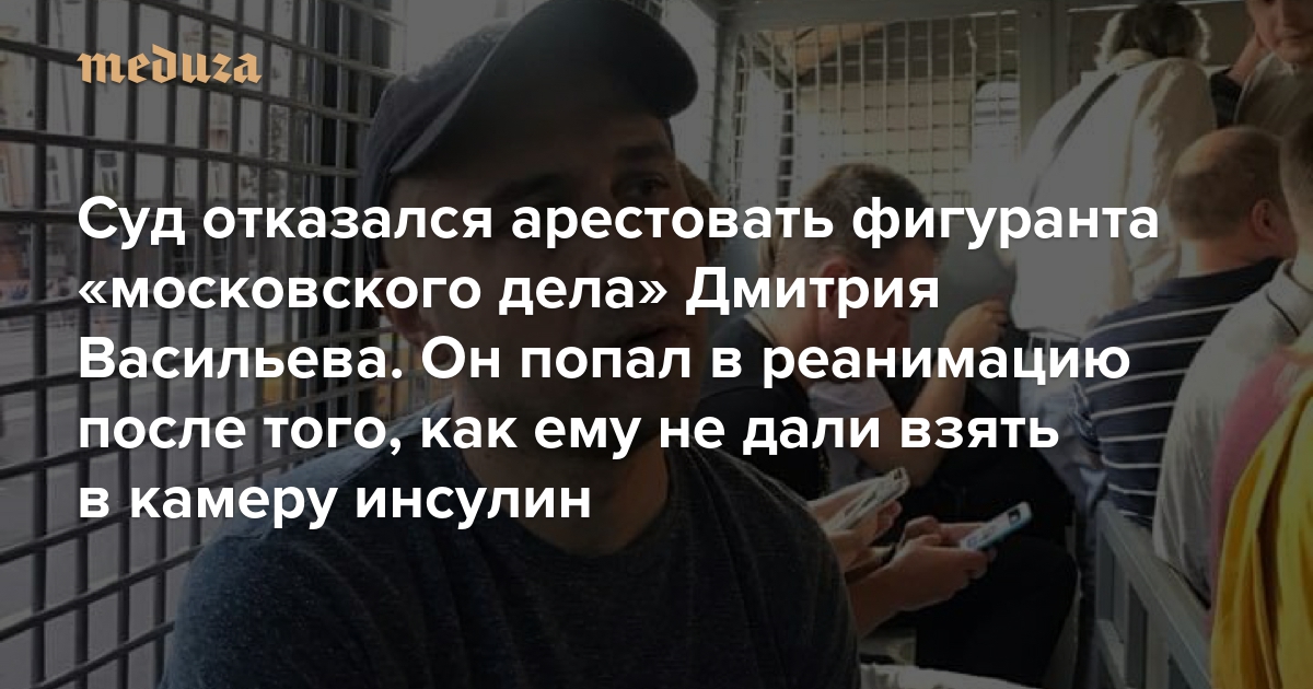Суд отказался арестовать фигуранта «московского дела» Дмитрия Васильева. Он попал в реанимацию после того, как ему не дали взять в камеру инсулин