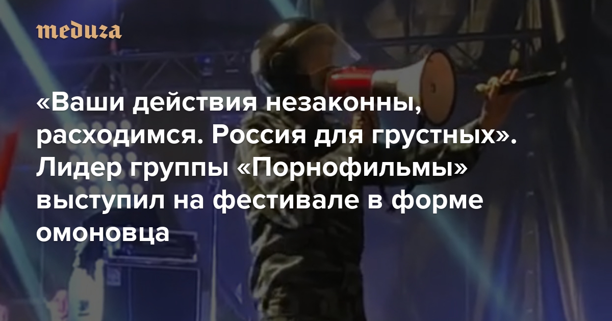 «Ваши действия незаконны, расходимся. Россия для грустных». Лидер группы «Порнофильмы» выступил на фестивале в форме омоновца