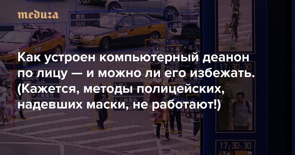 Современное компьютерное зрение обеспечило государства небывалыми возможностями в области видеонаблюдения. Кажется, лучше прочих этим пользуются авторитарные (или склонные к авторитаризму) режимы. С деаноном пытаются бороться самыми разными способами — от лазерных указок до специального макияжа и украшений. Однако если в Гонконге маски и шарфы надевают протестующие, то в Москве массово переходят на балаклавы сами правоохранители. Впрочем, против новых, только появляющихся систем распознавания лиц ни то, ни другое уже, видимо, не поможет.