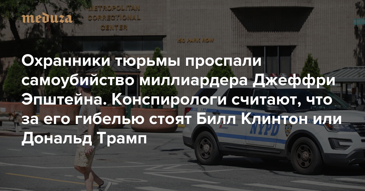 Охранники тюрьмы проспали самоубийство миллиардера Джеффри Эпштейна. Конспирологи считают, что за его гибелью стоят Билл Клинтон или Дональд Трамп