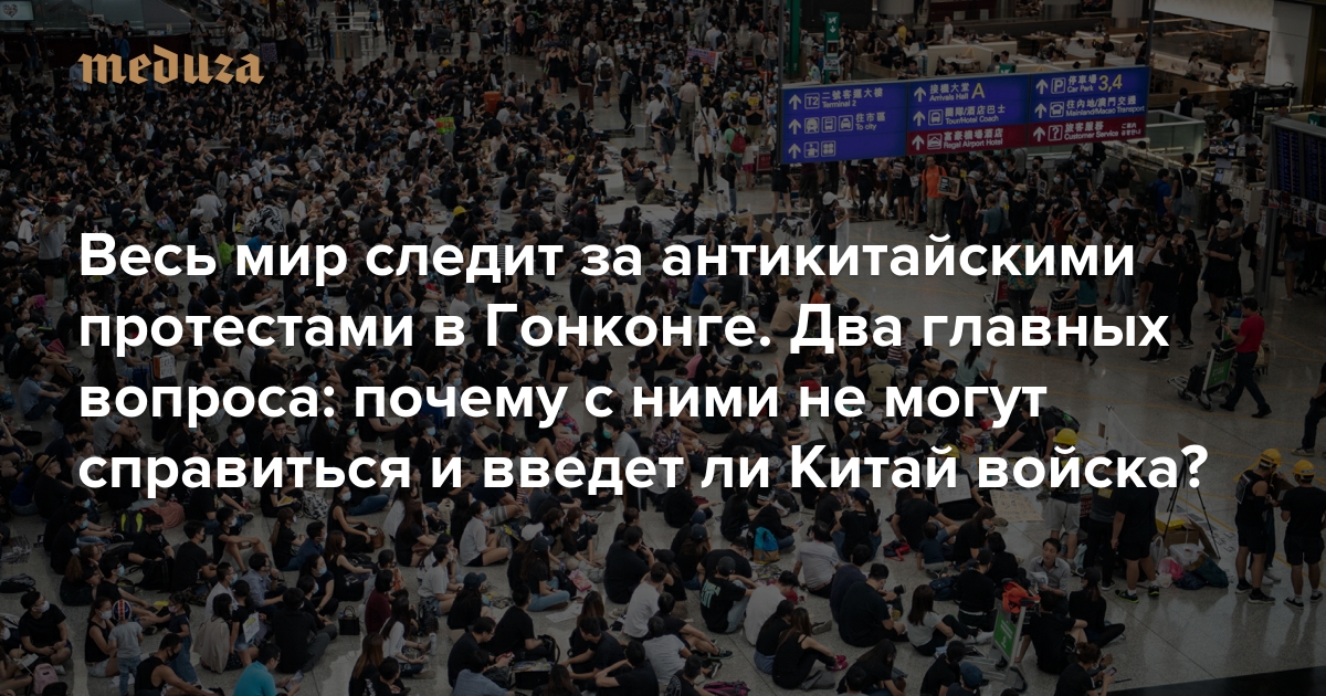 Весь мир следит за антикитайскими протестами в Гонконге. Два главных вопроса: почему с ними не могут справиться и введет ли Китай войска?