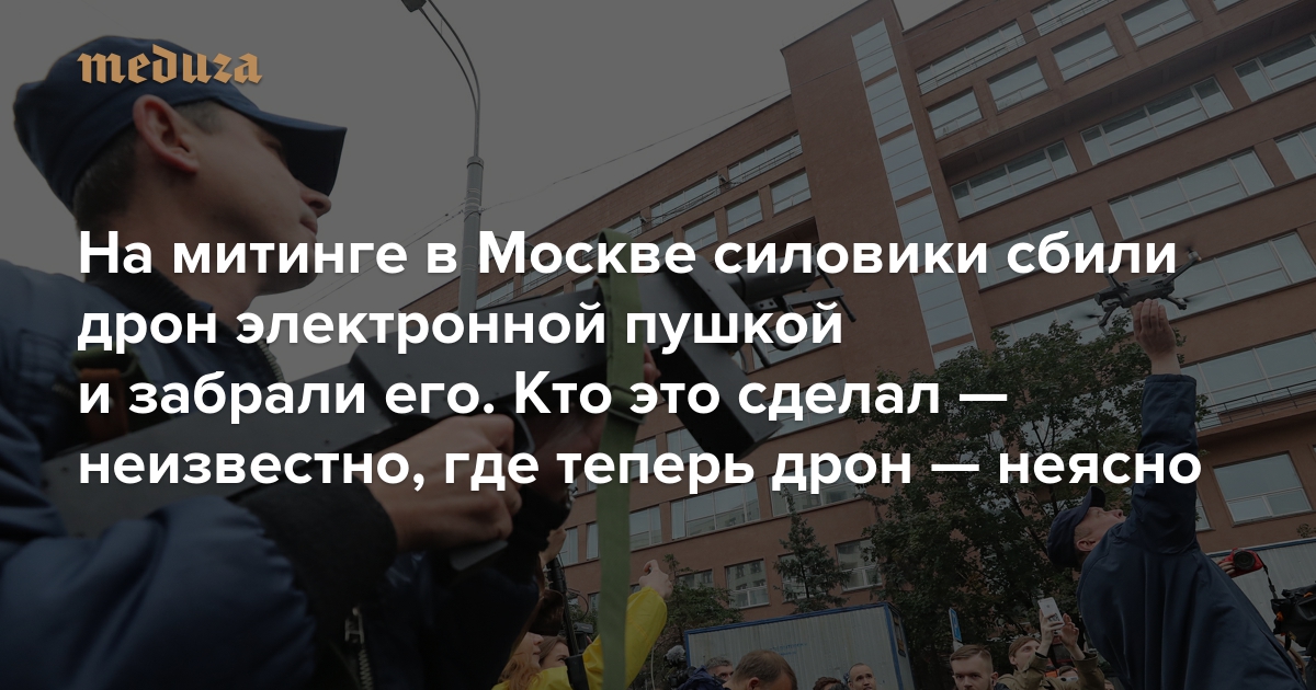 На митинге в Москве силовики сбили дрон электронной пушкой и забрали его. Где теперь дрон — неясно Кто мог это сделать: расследование «Медузы»