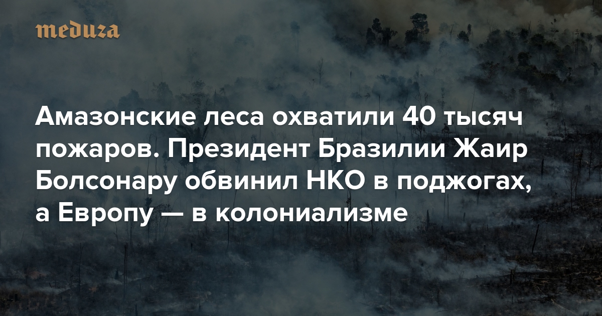 Амазонские леса охватили 40 тысяч пожаров. Президент Бразилии Жаир Болсонару обвинил НКО в поджогах, а обеспокоенную Европу — в колониализме