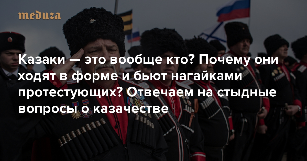Казаки — это вообще кто такие? И почему они ходят в форме и бьют нагайками протестующих? Отвечаем на стыдные вопросы о казачестве. Материал с антрактом