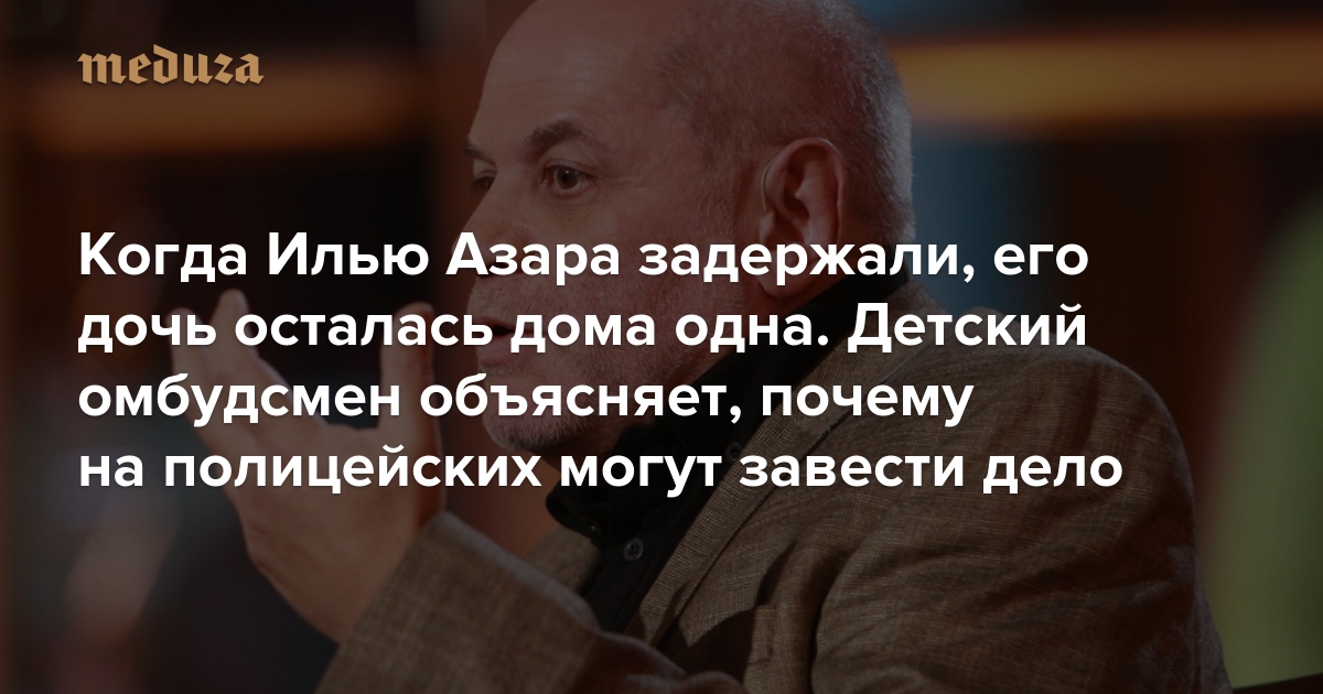 Вечером 2 сентября полиция задержала журналиста Илью Азара в подъезде его дома — Азару вменяют повторное нарушение правил проведения митингов. Он сообщил полицейским, что в квартире без присмотра находится его дочь, которую он только что уложил спать. Полиция отказалась ждать других родственников и увезла журналиста в отдел. Супруга журналиста Екатерина Кузнецова приехала домой примерно через полчаса после задержания и обнаружила, что дверь в квартиру все еще открыта. Уполномоченный по правам ребенка Москвы Евгений Бунимович уже попросил прокуратуру проверить действия полицейских. В интервью «Медузе» он заявил, что попытки правоохранительных органов втягивать детей во взрослые конфликты подрывают все усилия, направленные на нормализацию государственной политики по защите детей и семей.