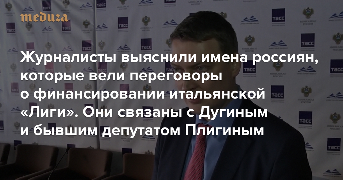 Журналисты выяснили имена россиян, которые вели переговоры о финансировании итальянской «Лиги». Они связаны с Дугиным и бывшим депутатом Плигиным