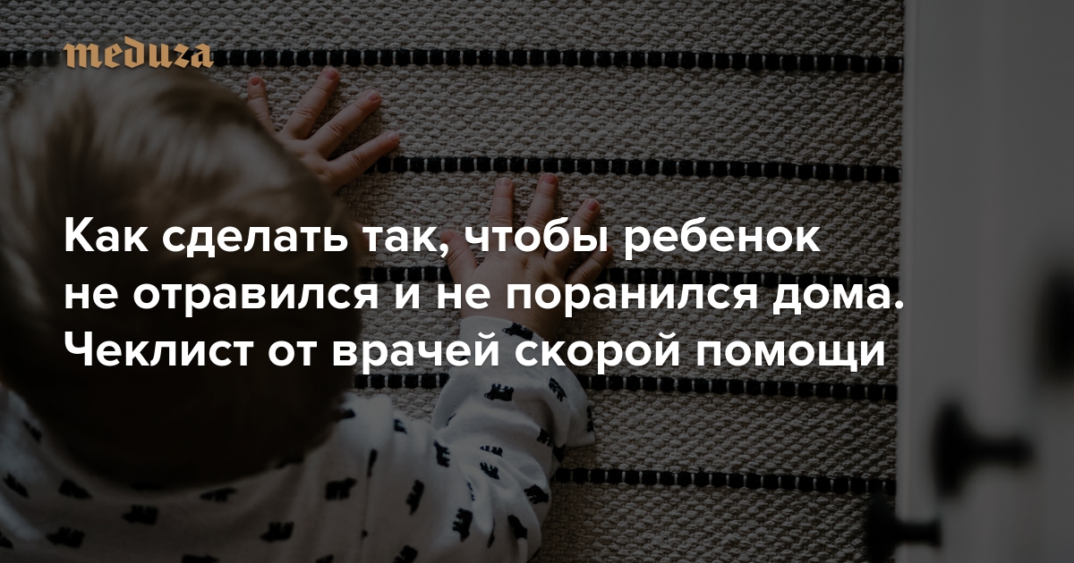 Большинство детских травм и отравлений можно предотвратить. Для этого нужно создать безопасную среду в доме, а родителям — приобрести несколько простых привычек. Понятно, что родителям приходится непросто, мозг утомлен недосыпом, мир полон отвлекающих факторов, но безопасность ребенка важнее. Авторы сайта о скорой помощи «Девятый вызов», которым хотелось бы поменьше ездить на вызовы к детям, подготовили чеклист. Он поможет предотвратить почти все несчастные случаи в домашней обстановке.