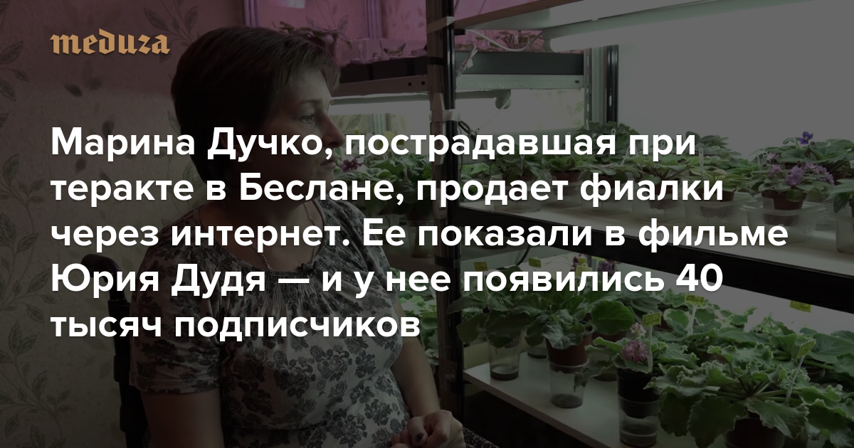 Марина Дучко, пострадавшая при теракте в Беслане, продает фиалки через интернет. Ее показали в фильме Юрия Дудя — и у нее появились 40 тысяч подписчиков