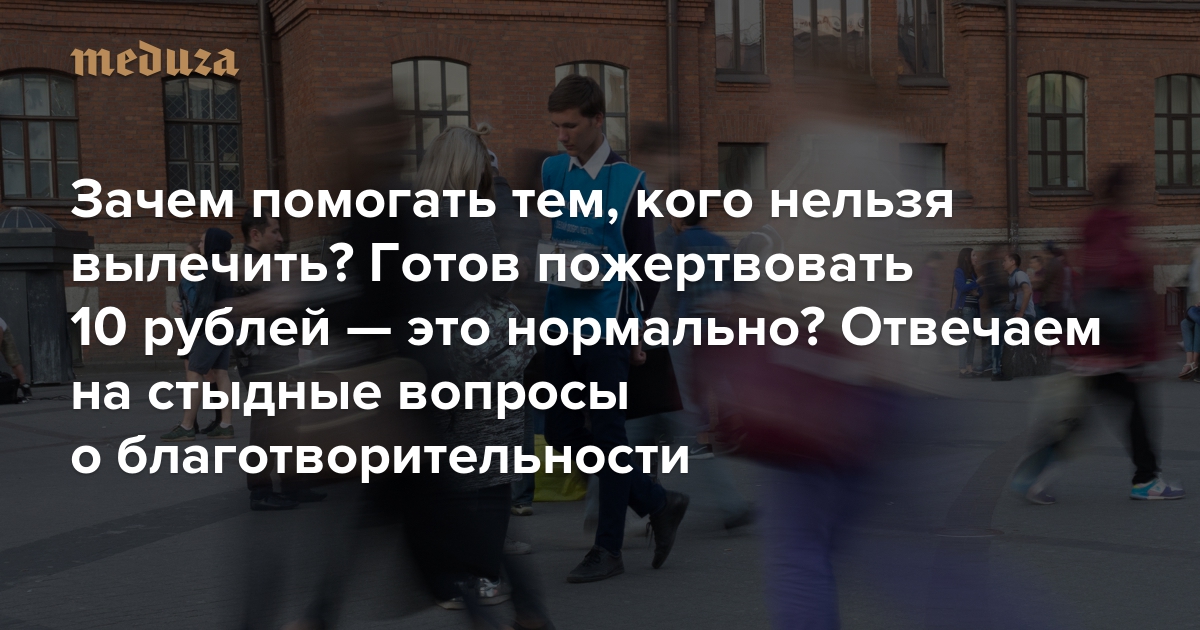 Готов пожертвовать 10 рублей — это мало? Зачем помогать тем, кого нельзя вылечить? А хвастаться пожертвованиями можно? Стыдные вопросы о благотворительности