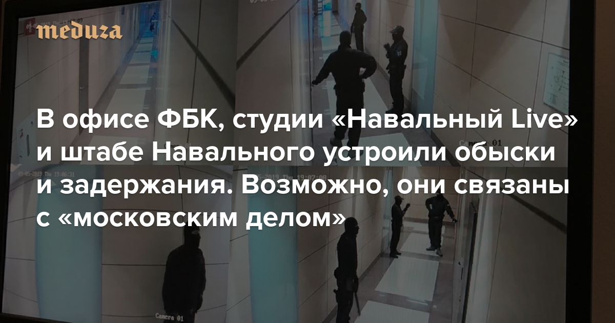 В офисе ФБК, студии «Навальный Live» и штабе Навального устроили обыски и задержания. Возможно, они связаны с «московским делом»