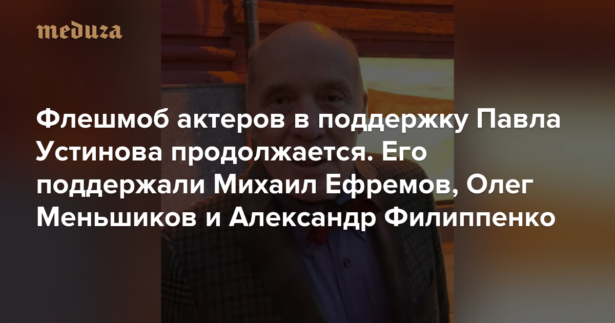 Флешмоб актеров в поддержку Павла Устинова продолжается Его поддержали Михаил Ефремов, Олег Меньшиков и Александр Филиппенко. Все новые видео — тут