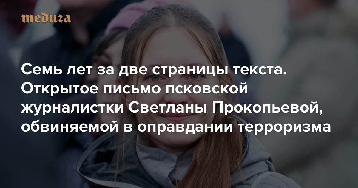 Семь лет за две страницы текста Открытое письмо псковской журналистки Светланы Прокопьевой, обвиняемой в оправдании терроризма