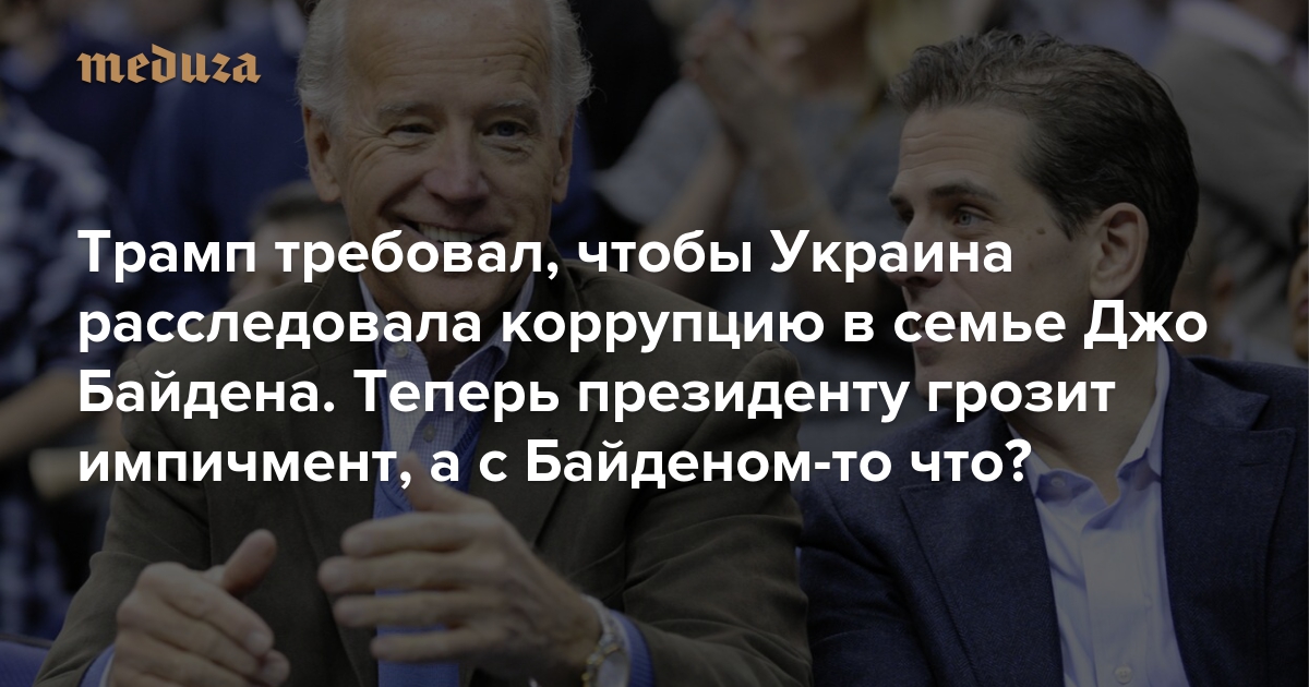 Процедура импичмента Дональда Трампа началась из-за того, что в разговоре с Владимиром Зеленским он настоятельно попросил президента Украины провести расследование против семьи Джо Байдена — вероятного участника президентских выборов 2020 года от Демократической партии. Это расследование касается того, периода, когда Байден был вице-президентом США и отвечал за украинское направление американской политики, а его сын работал в совете директоров одной из крупнейших украинских газовых компаний. «Медуза» рассказывает о том, что хотел узнать Трамп.