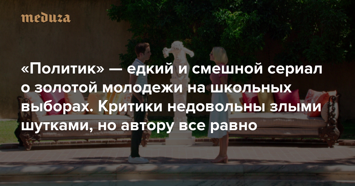 «Политик» — едкий и смешной сериал о золотой молодежи, соревнующейся на школьных выборах Критики недовольны злыми шутками, но автору все равно