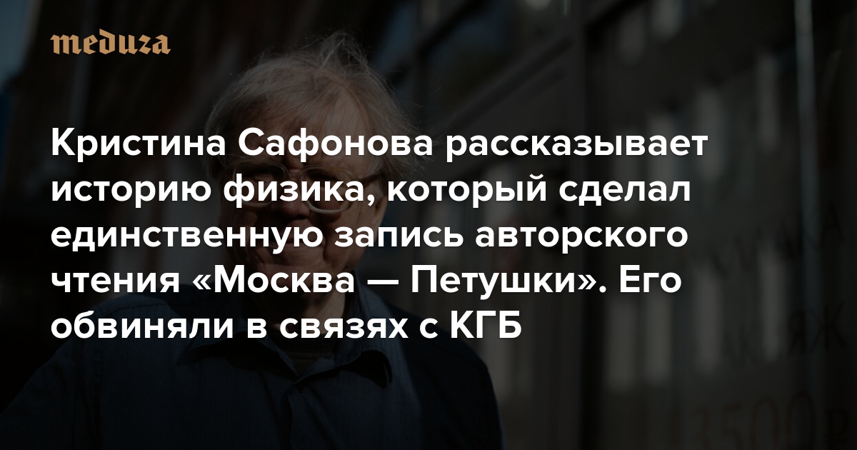 Восемь чемоданов с сокровищами Кристина Сафонова рассказывает историю физика, который сделал единственную запись авторского чтения «Москва — Петушки». Его обвиняли в связях с КГБ