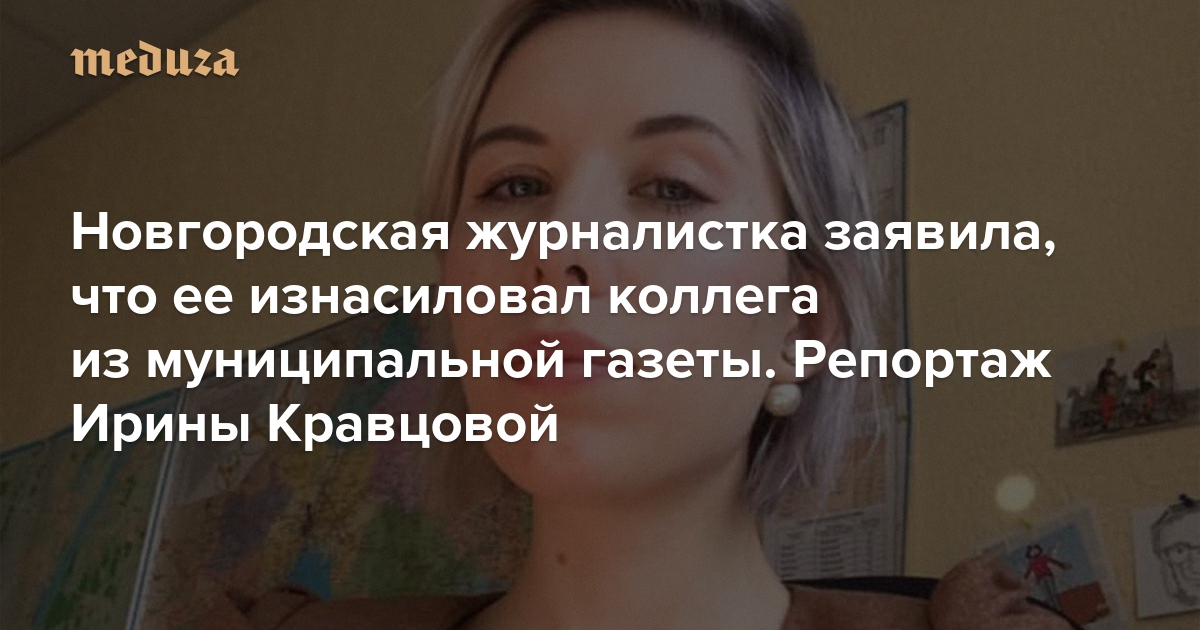 Журналистка сайта «Новгород.ру» Алина Щеглова 13 октября опубликовала пост, в котором заявила, что ее изнасиловал коллега из другого издания — сотрудник местной муниципальной газеты. По утверждению Щегловой, это произошло в конце сентября на вечеринке после журналистского конкурса. Журналистка не хотела рассказывать о случившемся публично: выступить она решила, когда доследственную проверку продлили на месяц, следователя сменили — а человек, который, по словам Щегловой, изнасиловал ее, «продолжал возглавлять газету, проводить планерки и ходить на пресс-конференции». При этом в посте она не назвала имя предполагаемого насильника, но после публикации оно перестало быть секретом — его очень быстро вычислили другие журналисты. Спецкор «Медузы» Ирина Кравцова отправилась в Великий Новгород и поговорила со всеми участниками этой истории.