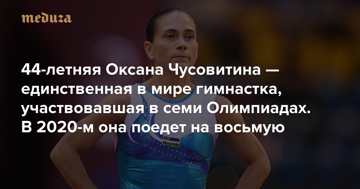 «Я выступаю так, чтобы не выглядело, что мне уже пора бы заканчивать» 44-летняя Оксана Чусовитина — единственная в мире гимнастка, участвовавшая в семи Олимпиадах. В 2020-м она поедет на восьмую