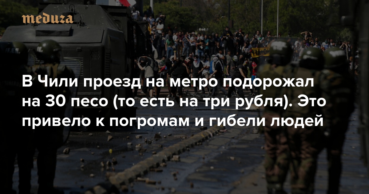 В Чили — самой благополучной стране Южной Америки — проезд на метро подорожал на 30 песо (то есть на три рубля). Это привело к погромам и гибели людей
