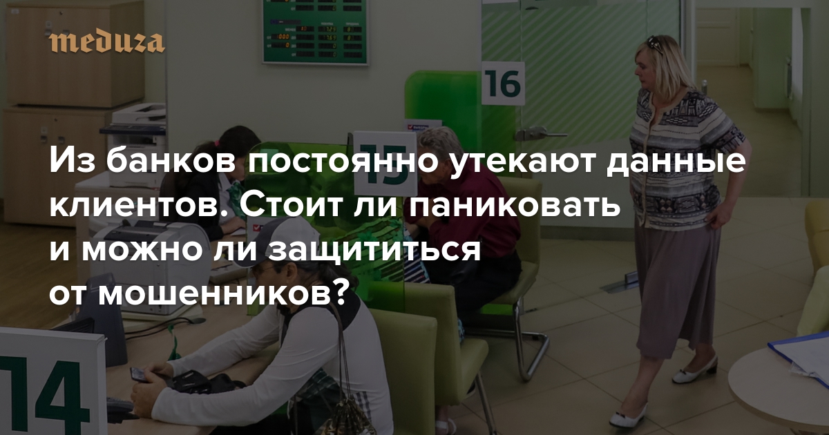 24 октября «Коммерсант» сообщил, что на черном рынке продаются персональные данные клиентов Сбербанка. По информации издания, база содержит порядка миллиона строк с полными данными клиентов — паспорт, прописка, адреса проживания, телефоны, счета, сумма остатка и записи последних разговоров звонков клиентов в колл-центр банка. В пресс-службе банка заявили, что таких утечек данных в банке не было. В начале октября уже сообщалось о возможной утечке данных 60 миллионов кредитных карт клиентов Сбербанка. В банке признали утечку данных только пяти тысяч клиентов. При этом в интернете свободно продается банковская информация многих россиян. «Медуза» попросила специалистов по борьбе с утечками рассказать, стоит ли их бояться, как защититься и почему банки не делают больше для защиты данных своих клиентов.