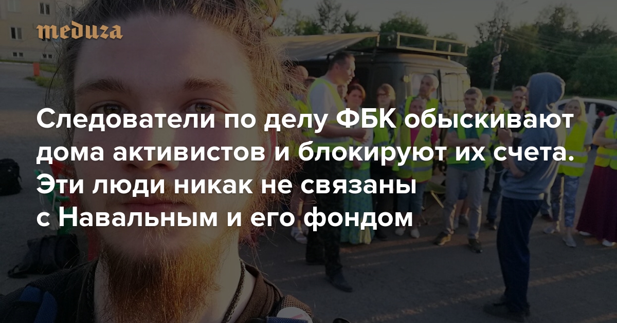 В октябре во многих городах России — от Архангельска и Краснодара до Казани и Красноярска — прошли обыски по делу ФБК. Обыскивали активистов различных оппозиционных движений и организаций наблюдателей на выборах — обыски одновременно проходили по двум сотням адресов. Многие после обысков обнаружили на своих счетах многомиллионные минусовые суммы, а сами счета были заморожены. Сразу несколько активистов, у которых прошли обыски по делу ФБК, рассказали «Медузе», что не имеют никакого отношения к организации Алексея Навального.
