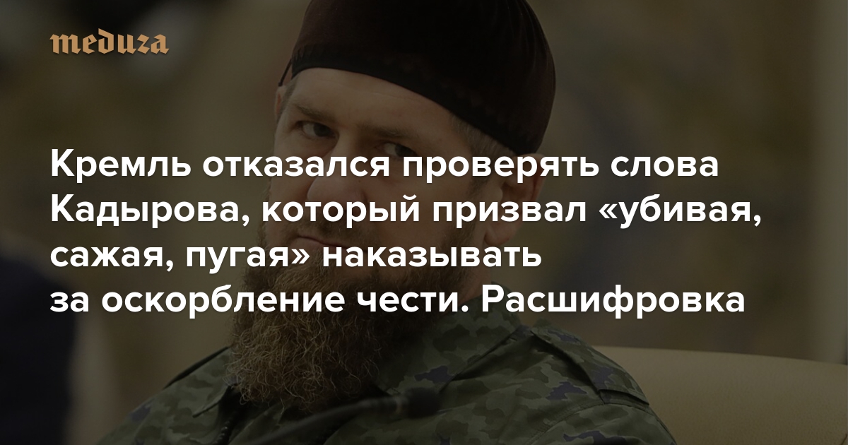 Кремль отказался проверять слова Кадырова, который призвал «убивая, сажая, пугая» наказывать за оскорбление чести. Расшифровка