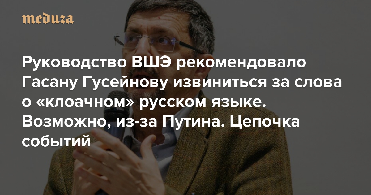 Руководство ВШЭ рекомендовало Гасану Гусейнову извиниться за слова о «клоачном» русском языке. Возможно, из-за Путина Цепочка событий