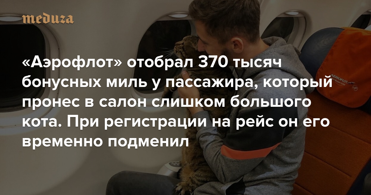 «Аэрофлот» отобрал 370 тысяч бонусных миль у пассажира, который пронес в салон слишком большого кота. При регистрации на рейс он его временно подменил