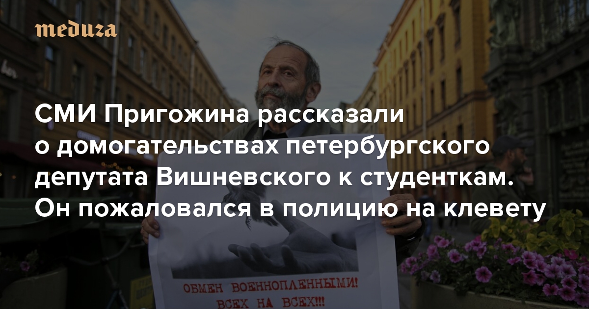 СМИ Пригожина рассказали о домогательствах петербургского депутата Вишневского к студенткам. Он пожаловался в полицию на клевету