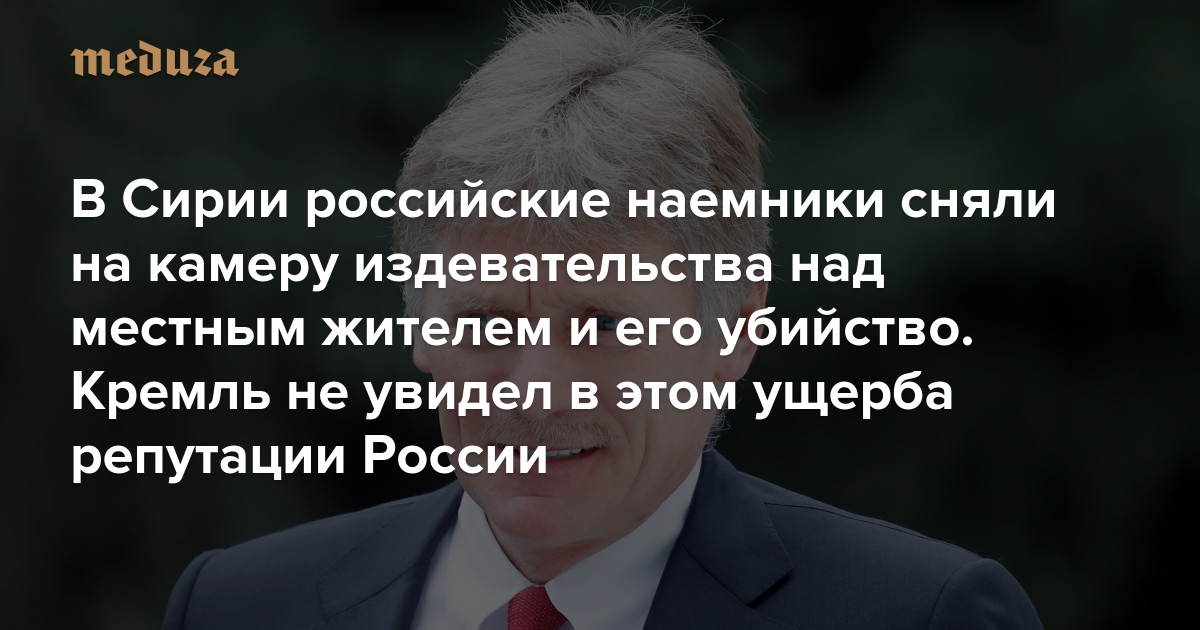 «Медуза»: Вы правильно заметили, что расследованием таких инцидентов должны заниматься следственные органы. Но с точки зрения репутационных рисков для России? Сейчас везде циркулирует видео, где, судя по всему, россияне издеваются и убивают человека. Не опасаются ли в Кремле, что если не будет проведено должного расследования, прежде всего российскими правоохранительными органами, то это нанесет ущерб репутации России и репутации российской операции миротворческой на территории Сирии?