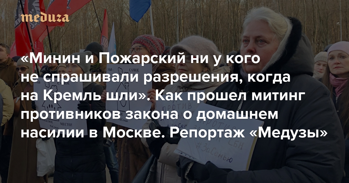 «Минин и Пожарский ни у кого не спрашивали разрешения, когда на Кремль шли» Как прошел митинг противников закона о домашнем насилии в Москве. Репортаж «Медузы»