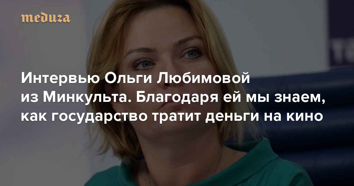 «Нам нужно либо денег, либо славы — а лучше и того и другого» Интервью Ольги Любимовой из Минкульта. Благодаря ей мы знаем, как государство тратит деньги на кино