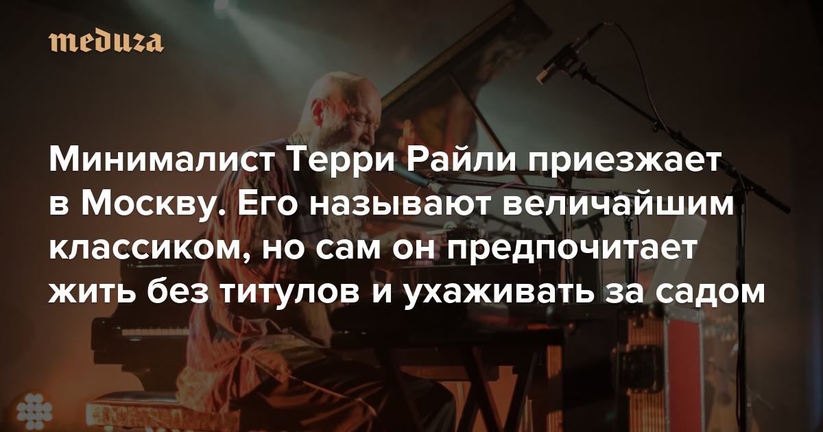 Музыкант-минималист Терри Райли приезжает в Москву. Его называют величайшим классиком и отцом жанра, но сам он предпочитает жить без титулов и ухаживать за садом