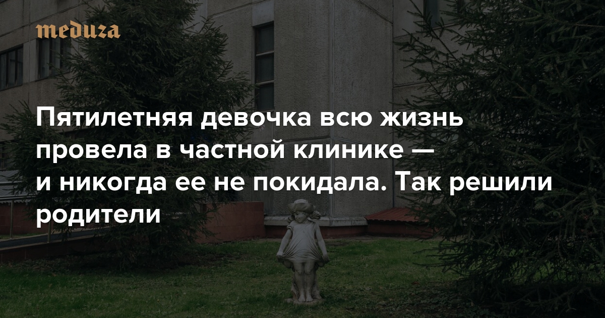 Пятилетняя девочка всю жизнь провела в частной клинике — и никогда ее не покидала. Так решили родители Катерина Гордеева рассказывает историю ребенка, которого мать считает неизлечимо больным