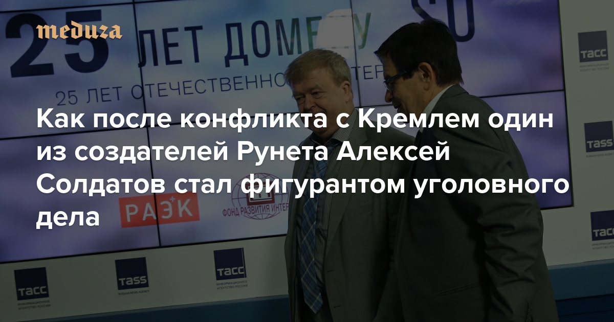В конце декабря стало известно о возбуждении уголовного дела в отношении одного из основоположников Рунета и бывшего замминистра связи РФ Алексея Солдатова, а также его бизнес-партнеров: Евгения Антипова и Алексея Шкиттина. Всех троих обвиняют в мошенничестве в особо крупном размере, а именно «в хищении путем обмана права на IP-адреса», что, по версии следствия, повлекло за собой причинение ущерба на сумму более 500 миллионов рублей Российскому научно-исследовательскому институту развития общественных сетей (РосНИИРОС). Как выяснила «Медуза», уголовное дело появилось после вмешательства администрации президента: заявление в МВД подал лично начальник управления президента РФ по развитию информационно-коммуникационных технологий Андрей Липов. Причина конфликта Алексея Солдатова с президентской администрацией — борьба за домен первого уровня .su, зарегистрированный в 1990 году для территории СССР и по-прежнему широко используемый в Рунете. С недавних пор .su, наряду с доменами .ru и .рф, стал частью «национальной доменной зоны» в рамках закона о суверенном Рунете и должен контролироваться государством. Однако исторически этим доменом управляют не госструктуры, а Фонд развития Интернета, контролируемый Алексеем Солдатовым.