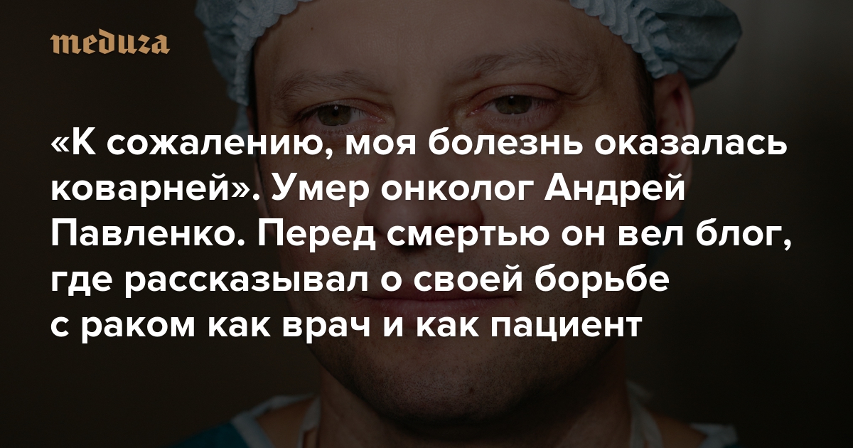 «К сожалению, моя болезнь оказалась коварней» Умер онколог Андрей Павленко. Перед смертью он вел блог, где рассказывал о своей борьбе с раком как врач и как пациент