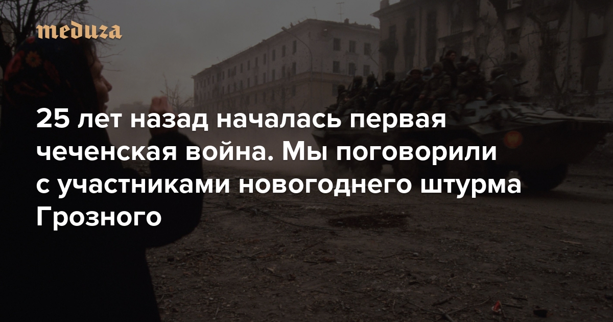 25 лет назад российские войска начали операцию по восстановлению конституционного порядка в Чечне — так официально называлась первая чеченская война. В новогоднюю ночь с 1994 на 1995 год войска приступили к штурму Грозного, они встретили мощное сопротивление, понесли большие потери — около полутора тысяч человек убитыми — и не смогли взять город под контроль ни в первый день, ни в первую неделю, ни в первый месяц войны. Основные городские бои в Грозном закончились только в начале февраля. «Медуза» поговорила с участниками штурма Грозного — солдатами и одним офицером 129-го мотострелкового полка.