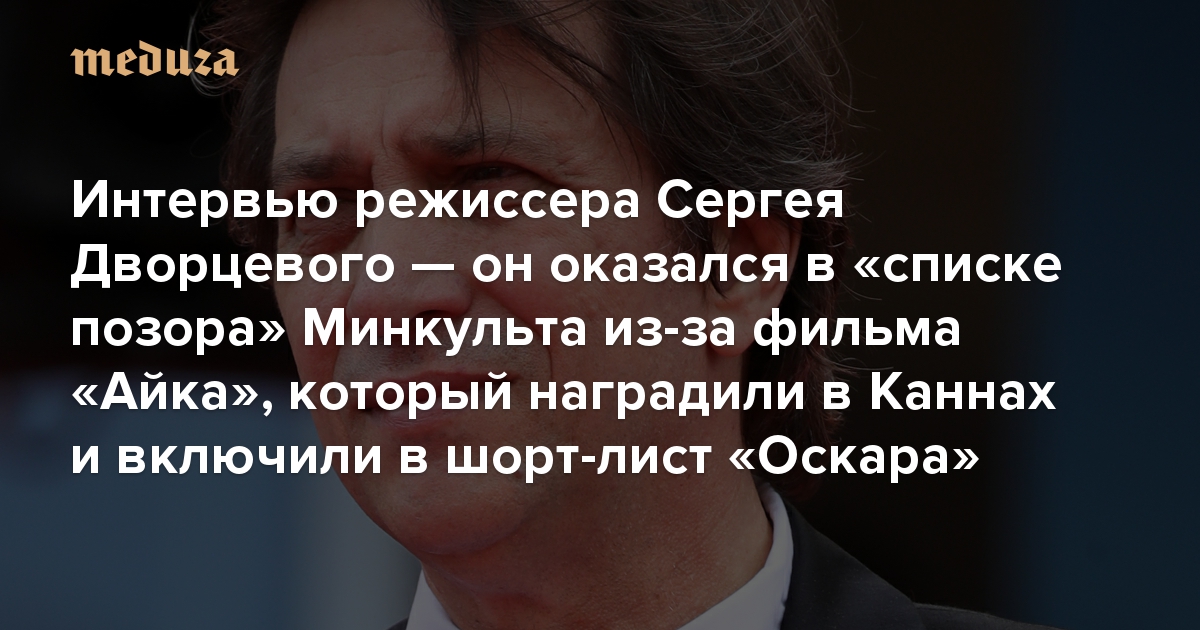 Осенью 2019 года Минкульт обнародовал данные о господдержке кинематографа в России, включая информацию о должниках, которые не вернули государству деньги, выделенные на съемки фильмов. В списке оказалась и компания, снимавшая фильм «Айка» — социальную драму из жизни мигрантов из Средней Азии. Фильм получил много фестивальных наград, в том числе приз за лучшую женскую роль на Каннском фестивале. Картина попала и в шорт-лист премии «Оскар» в номинации «Лучший фильм на иностранном языке». Тем не менее за нарушение сроков производства режиссер, продюсер и автор сценария картины Сергей Дворцевой (летом он вошел в состав Американской киноакадемии) теперь должен выплатить Минкульту больше семи миллионов рублей штрафов — при общем бюджете картины примерно в 100 миллионов (из них господдержка составила 28 миллионов рублей). В интервью «Медузе» режиссер Дворцевой рассказал, почему не смог уложиться в сроки, что означает для него такой долг перед государством и почему он считает, что поддержка кинематографа в России устроена неправильно.