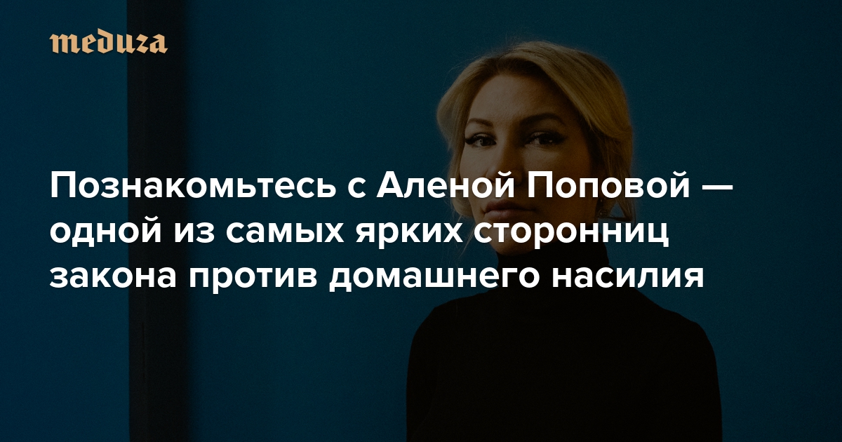 Сегодня Алена Попова известна как одна из авторов и активных сторонников закона против домашнего насилия, вокруг которого не стихают бурные споры феминисток с традиционалистами. Из-за этого Поповой постоянно приходят угрозы, но активистка не сдается и продолжает заниматься политикой. Например, борется с московской системой распознавания лиц. Корреспондент «Медузы» Кристина Сафонова поговорила с Аленой Поповой — и рассказывает о ее опыте участия в выборах, конфликте с оппозицией и политических амбициях.